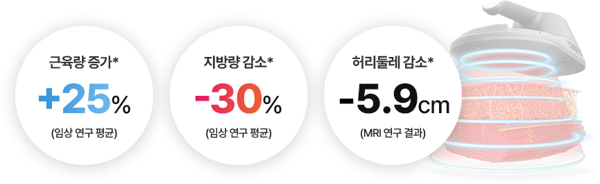 엠스컬프네오는 일반적인 운동보다 높은 강도의 근육 수축을 유도하기 때문에, 운동이 어려운 분들도 근육 증가와 바디라인 개선 효과를 기대할 수 있습니다.