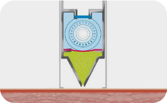 레이저 에너지를 압력으로 변환하여 약물을 젯(Jet) 형태로 피부에 전달하는 방식으로