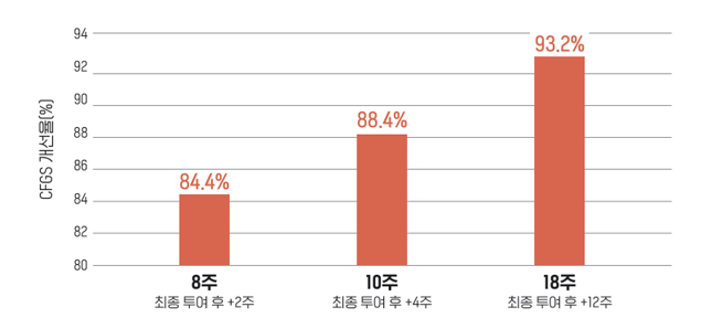 2주 간격으로 총 4회 투여한 후 3개월 경과 관찰한 결과,